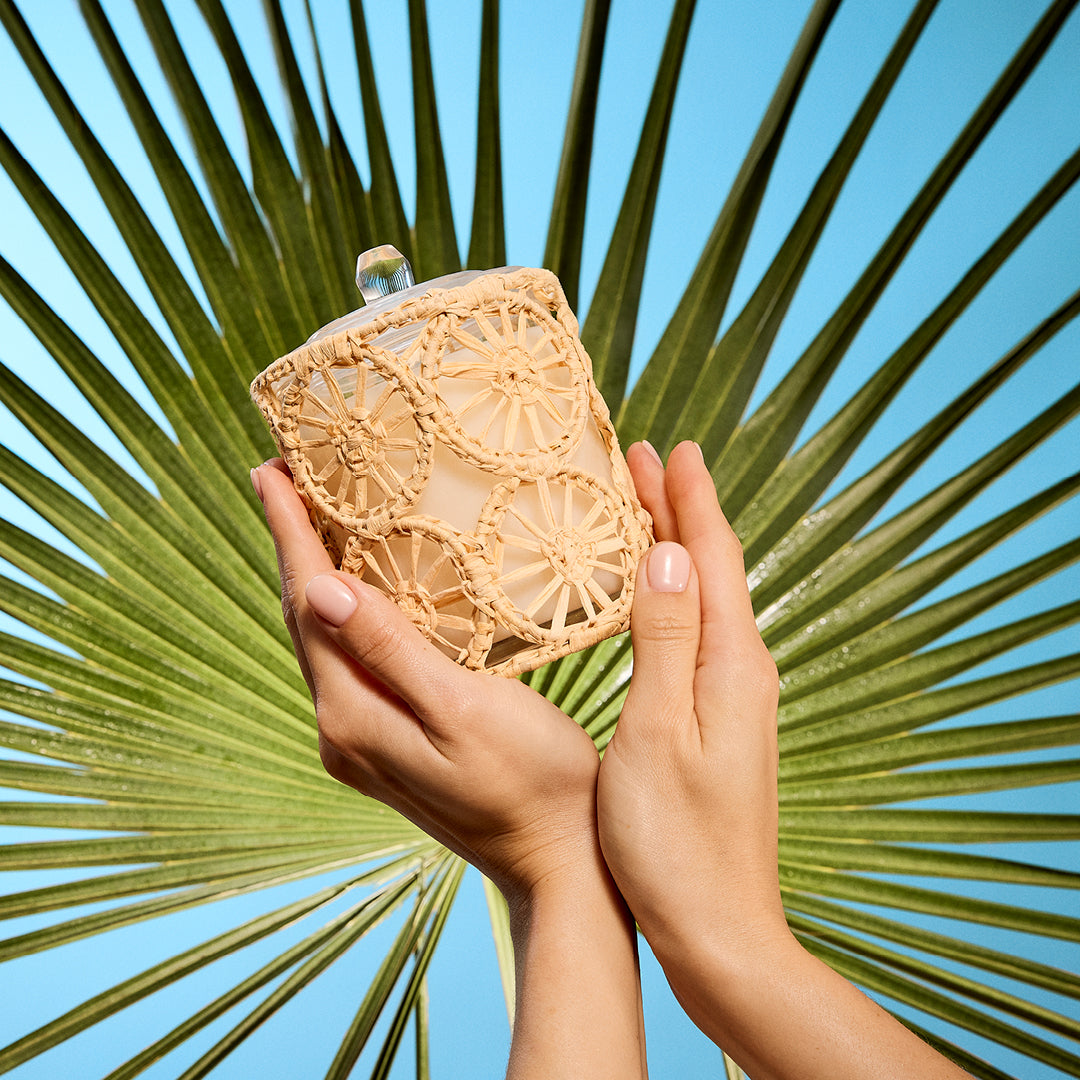 is a blissful summer escape scented with fresh Coconut, salted ocean breeze, and delicate tropical petals. Hints of Palo Santo incense from spa bungalows blend with star Jasmine and Sea Salt, evoking swaying palms, endless skies, and pure relaxation.